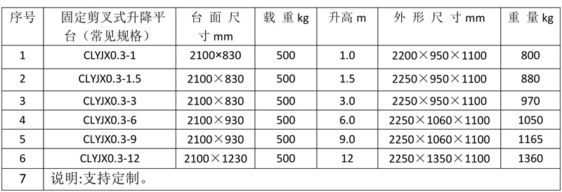固定剪叉式升降平台为传统式升降设备,主要组成有设备底座、升降剪叉机构、升降台面、防护栏、液压油缸、液压泵站、电路控制系统等组成。主要根据用户空间设计制造,多数安装在基坑内,叠落状态时与地面相平,通常载重300kg,起升高度可满足多数客户的需求,设备广泛用于生产流水线、仓库、商场、停车场、家庭等各种行业。根据使用要求,可配置附属装置,进行任意组合,如:防护罩、钢化玻璃护栏、灯光报警、红外安全检测、应急开关、应急下降、密封包装等功能。各种配置的正确选择,可更换发挥升降机的功能,取得很好的使用效果。同时也接入物联网平台,进行大数据储存及远程管理。
