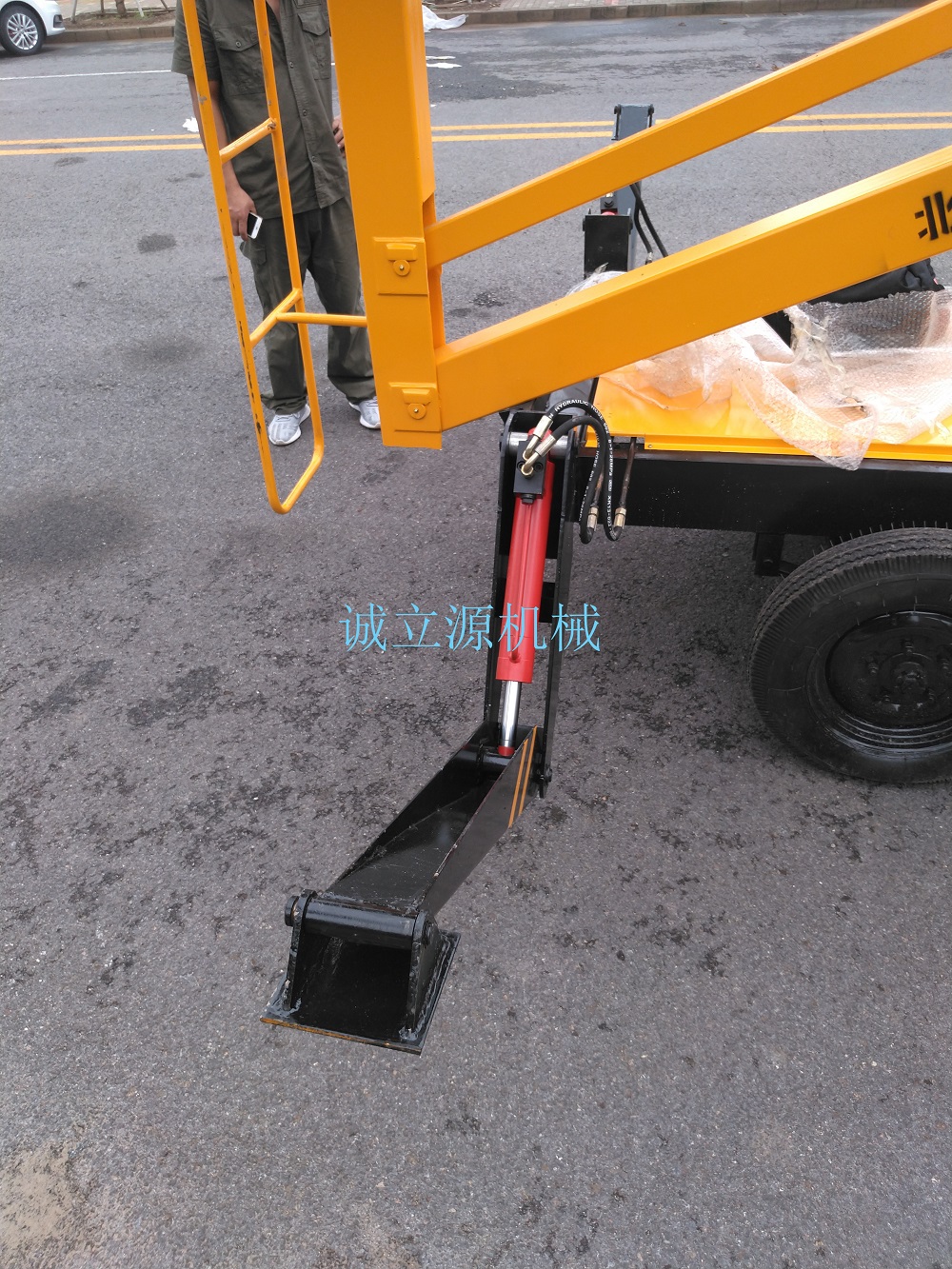 18865926528曲臂式液压升降机产品简介及参数: 本设备是垂直式、剪叉式升降机的替代产品,该机可用发动机、蓄电池等为 动力,发动机均是电启动,四条液压伸缩支腿、液压升降、可自行走,